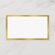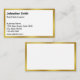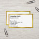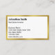 This white business card has black text that you can edit to show the details about you and your business. There are lines for your name, professional job title, business name, address, phone number, and website. All text can be edited or deleted. The faux (not foil) gold border is an artistic rendering.