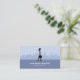 A business card with a silhouette of a woman with a briefcase on a background composed of a city skyline with a few buildings. The back has full contact information. Perfect for activities such as business consultant, accountant, tax services, investment manager, analyst, etc.