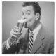 Businessman in full suit drinking beer in studio, (B&W), portrait | George Marks | AssetID: 57520681