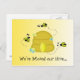 A cute design featuring a beehive with three little buzzing bees and flowers around it. Says 'we've moved our hive' customise with new address on the back...