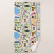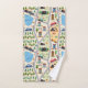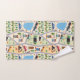 Fun colourful kids' bath towel set features busy city roads with cars, construction equipment, houses, trees and even a little lake!