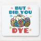 But did you dye design is funny Easter egg design for toddler, boy, girl or adult. Funny pun design features Easter bunny on top of dyed Easter eggs.
