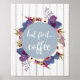 But first coffee, Flowers, Blue, Rustic, Wood poster 8"x10"