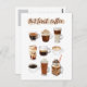 Delicious coffee dessert drinks (cappuccino, macchiato, espresso, etc) hand-painted in gouache and watercolors make up this fun vintage-style poster.