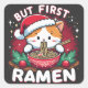 But First Ramen, Cute Cat with Santa Hat Christmas Square Sticker