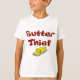 The t-shirt feels and looks great quality, a good thick cotton. It will be a little big for my son, but that means he will be able to wear it and not out grow it too soon. The print was as described on the order when personalised. True size, shape and colour T-shirt- thanks.