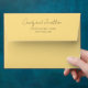 A trendy, butter yellow colour mailing envelope for your wedding invitations and features your name and address printed on back flap in a black, modern script style. Personalise your envelope by editing and replacing name and address with your own. Edit further to change font style or colour. Select your envelope size that fits your invitation.