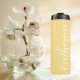 For your wedding bridesmaids! Keep hot beverages hot and cold beverages cold with this trendy, insulated thermal tumbler that is a butter yellow colour along with bridesmaid's name printed in white, stylised script. Edit your thermal tumbler and replace name with your own bridesmaid name. Available in many, popular bridesmaid wedding colour schemes.