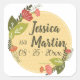 A joyful stickers in a buttercream yellow colour with white polka dots, orange flowers and foliage. (<a href='https://www.freepik.com/free-vector/collection-of-beautiful-floral-wedding-labels_1695810.htm'>Designed by Freepik</a>). <br/><br/>The sticker is easy to customise with your wording, font and font colour.<br/><br/>Not exactly what you're looking for? All our products can be custom designed to meet your needs at no extra charge.<br/><br/>Simply contact us at askcottonlamb@gmail.com<br/><br/>Coordinating products available: