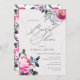 This stylish bridal shower invitation features pretty pink watercolor peonies and handwritten style script. With a geometric pattern in the background.