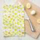 A bright and cheerful dish towel decorated with a floral pattern painted in several shades of yellow watercolor. A fun gift for a friend or new decor for your kitchen!