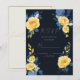 Buttercup yellow navy blue boho floral RSVP Invitation