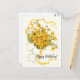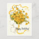 Vintage birthday card featuring vibrant yellow flowers on a decorative floral background.