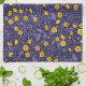 Buttercups, yellow and violet tea towel