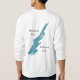 A pair of loons on the lake with a sunset in behind the and cattails on either side of them. On the back is a map of Butterfield Lake Redwood N.Y.