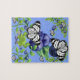 Butterflies and blueberries challenging puzzle. The background is blue and the butterflies are white. Thanks to Creative Fabrica for some of the elements in the design.