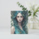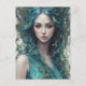 A woman with flowing blue hair is surrounded by butterflies and leaves, creating a mystical and ethereal atmosphere. Her serene expression and the vibrant colours convey a sense of harmony with nature.