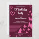 Butterflies and Hearts Pink Girl 13th Birthday Invitation
