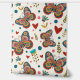 Butterflies Folk Hearts Floral Whimsical Pattern Wallpaper