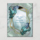 Nature springs to life in the new Butterfly of Paradise collection. Shimmering tropical splash in blues, turquoise and blue-green leaves on a textured black pattern with colourful butterflies. Customisation card design combined with a geometric gold frame for a wedding theme