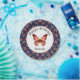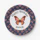 This personalised birthday party paper plate is embellished with pretty graphic butterflies in shades of orange, pink and black.