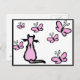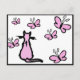 A pink cat is captivated by the flurry of pink butterflies swirling about. Pretty purrrrr.