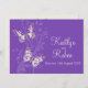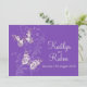 Beautiful graphic art butterflies and floral swirl invite in purple, cream and grey. Fashionable modern chic wedding design part of the graphic butterflies purple wedding stationary set. Edit this invitation with your own name, dates and words. Unique drawing and design by Sarah Trett.