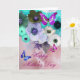 BUTTERFLIES ,WHITE TEAL ROSES AND ANEMONE FLOWERS CARD