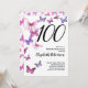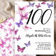 This pretty and whimsical 100th birthday invitation is perfect for a nice party and will set a fun and celebratory tone. This design features pink and purple butterflies, and is a nice feminine choice for a special event to celebrate a milestone birthday. Customise for your own birthday year, and search for "100" in my shop to see coordinating designs.
