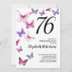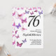 Butterfly 76th Birthday Invitation in Pink /Purple
