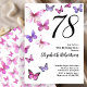 Butterfly 78th Birthday Invitation in Pink /Purple