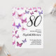 Butterfly 80th Birthday Invitation in Pink /Purple