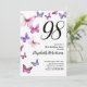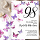This pretty and whimsical 98th birthday invitation is perfect for a nice party and will set a fun and celebratory tone. This design features pink and purple butterflies, and is a nice feminine choice for a special event to celebrate a milestone birthday. Customize for your own birthday year, and search for "98" in my shop to see coordinating designs.