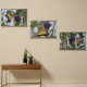 This beautiful botanical floral wall tapestry set features three different photographs of an Eastern Tiger Swallowtail Butterfly and a Bumblebee sharing the nectar of a butterfly bush flower. The Papilio Baucus is the North Carolina State butterfly. Shades of sky blue and green are the backdrop for the bright gold yellow butterfly and purple flowers.