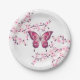Butterfly And Cherry Blossoms Pink White Paper Plate