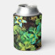 Flowers, a butterfly and leaves are glowing in this colorful painting that has been digitally altered.