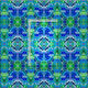 Fabric in a digital batik pattern of large butterflies on an ornate, arabesque medallion background, in shades of cobalt blue, turquoise and jade green