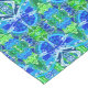 Tablecloth in a a digital batik pattern of large butterflies on an ornate, arabesque medallion background, in shades of cobalt blue, turquoise and jade green