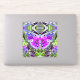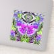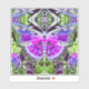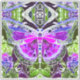 Sticker in a digital batik pattern of a Large violet and purple butterfly on an ornate, arabesque medallion background, in lavender, green, black and white