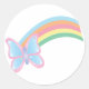 A beautiful pink and blue butterfly with a rainbow in a pastel colour palette