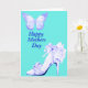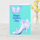 A Butterfly at the top and a shoe at the bottom of the image with the masage “Happy Mothers Day” in the middle, all in blue with a Teal background by martinspixs.