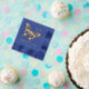 Experience the epitome of elegance and joy with these bespoke baby shower napkins. The front features a delightful butterfly in gold accents against a blue backdrop. The mother's name is showcased in an elegant serif font, complemented by "Baby Shower" in luxurious foil script alongside the event date. This simple but luxurious design brings an enchanting and memorable touch to your celebration, making it the perfect way to share the excitement and happiness of your baby shower with your guests.
