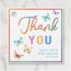Add a sweet finishing touch to your party favours with these watercolor butterfly baby shower tags. Featuring a rainbow of butterflies and glitter-style text, they're perfect for thanking guests at a spring, garden, or butterfly-themed baby shower. Pre-punched for easy tying.