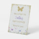 A welcome sign that is perfect for a butterfly theme baby shower. This design matches the invitation located here: https://www.zazzle.com/butterfly_baby_shower_girl_purple_floral_baby_gold_holiday_card-256197153388738195