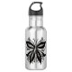 Abstract butterfly water bottle with an ink drawing depicting this beautiful insect with weird wings stipple shaded in black, white and dots. This beautiful creature is drawn in a stile similar to tattoos.