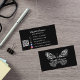 Elevate your brand with our elegant black business cards featuring a stunning faux silver looking butterfly. Perfect for female entrepreneurs, makeup artists, beauty salons, designers, and independent artists. Each card includes a QR code generator, creating a unique code linking to your website or social media. Make a memorable impression with style and functionality!