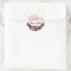 The sticker is made on wonderful paper and had no problem sticking to the bag that I purchased to put it on. I wanted to find a design that would be cute for the bride and groom and this one fit the bill as it has cute "bees" buzzing around and the wedding was taking place in a town called "Bee Cave". The packaging was great and protected the stickers. The website is easy to navigate and there are so many color choices. I had no problem finding a color that the bride was using on everything else selected. The design was adorable and there were many to choose from. You can make the figure as larger or smaller and you can place the photo and writting whereever you want to in the sticker. The printing is fabulous..better than expected.