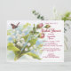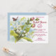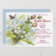 A bridal shower invitation featuring a vintage painting of a butterfly with lily of the valley flowers and roses.