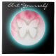 Butterfly Bubbles is a digital art design with pink and white fire, bubbles in a circle with a cut out butterfly shape and glowing light blue outer edge.