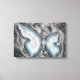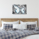 Graphic art design on stretched canvas for wall art of blue and white artistic butterfly design